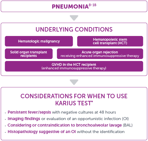 *Karius Spectrum is an LDT. Clinicians should independently evaluate its use and interpret test results. This content is provided for informational purposes only and is not intended or implied to be an exhaustive list of consideration or substitute for existing medical expertise or guideline recommendations.