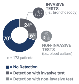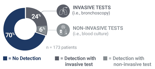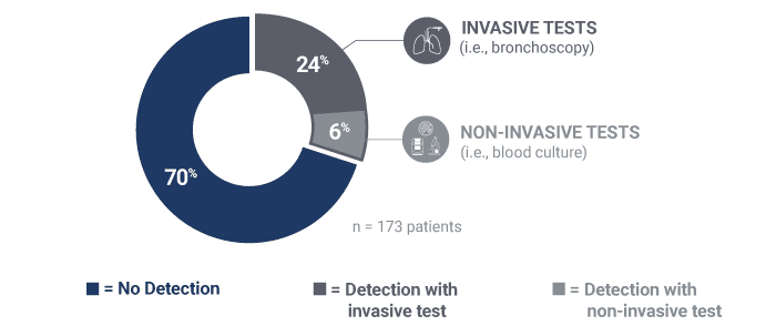 30% identification of pneumonia causing pathogens by invasive or non-invasive SOC in the PICKUP Study (15+ tests on average)