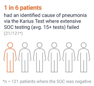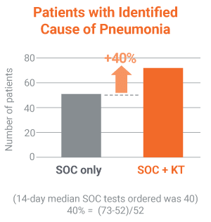 40% relative increase in the adjudicated cause of pneumonia identified when the Karius Test was added to SOC