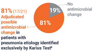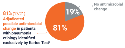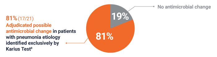 Possible antimicrobial change in 81% (17/21) of patients with a pneumonia etiology identified exclusively by Karius Test8
