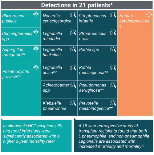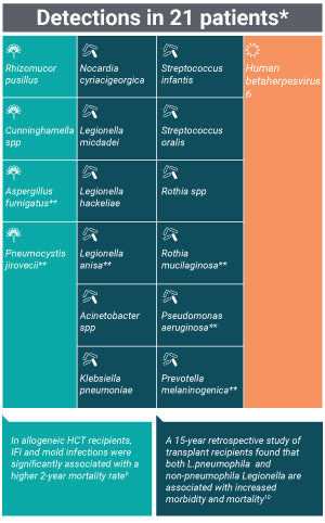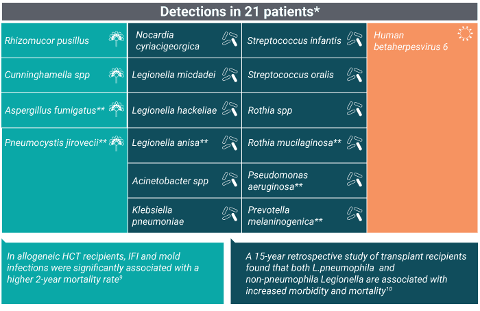 Adding the Karius Test to the diagnostic workup for identifying causative pathogens in pneumonia can improve diagnostic yield over SOC alone in patients with hematological malignancies or HCT.