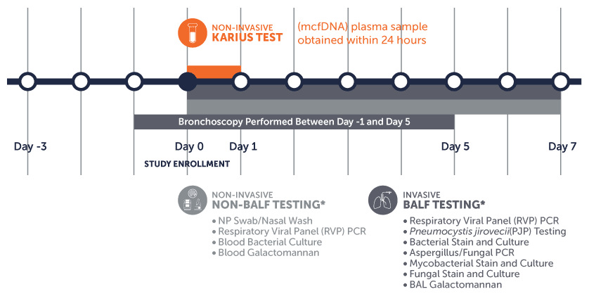The primary endpoint of this study was to determine the additive diagnostic value of the Karius Test, defined as the proportion of patients where the SOC was negative that had a probable cause of pneumonia exclusively identified by plasma mcfDNA sequencing